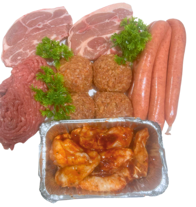 Our Mad Mini Pack includes: 1/2 kg Sausages 1/2 kg Rissoles 1/2 kg Mince 1/2 kg BBQ Rump Steak 1 kg Chicken Wings